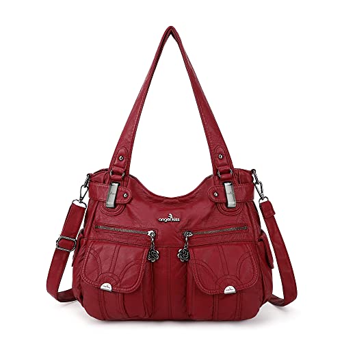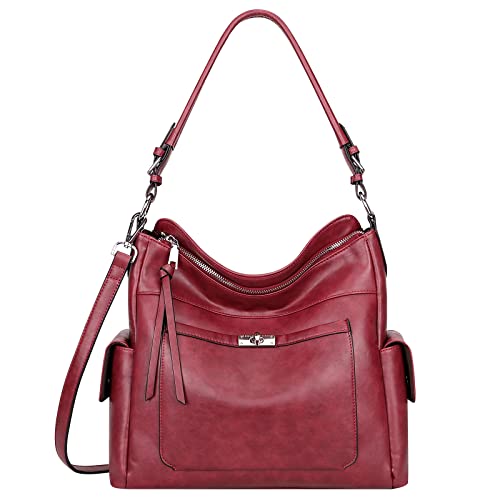 Over Earth Leather Hobo Purses and Handbags for Women Ladies Shoulder Crossbody Purse(O116E-2G Wine Red)