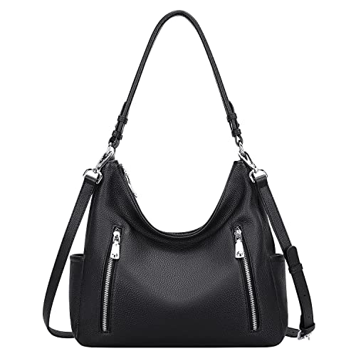 Over Earth Genuine Leather Purses and Handbags for Women Hobo Shoulder Bag Ladies Crossbody Bags Medium(O150E UG Black)