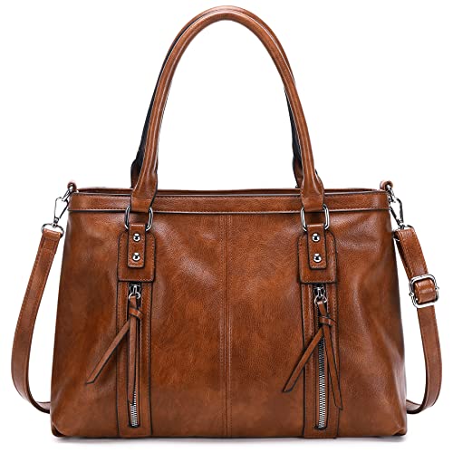 Prite Purses for Women Vegan Leather Tote Bag, Tote Purse Shoulder Bag with Adjustable Shoulder Strap Large Ladies’ Hobo Bags (Brown)