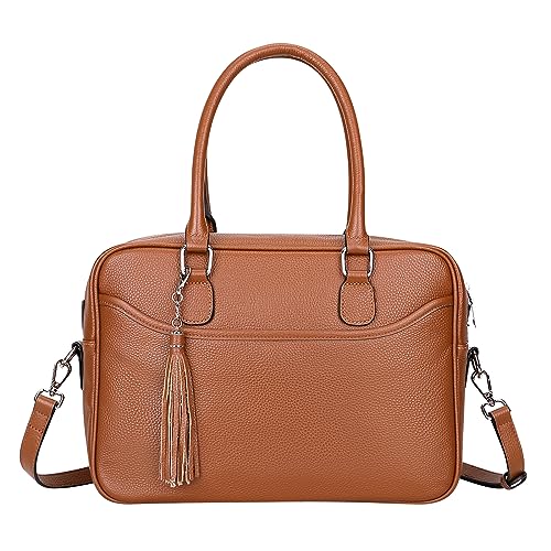 Over Earth Genuine Leather Satchel Top-Handle Handbags for Women Ladies Briefcase Bag(O197E Brown)