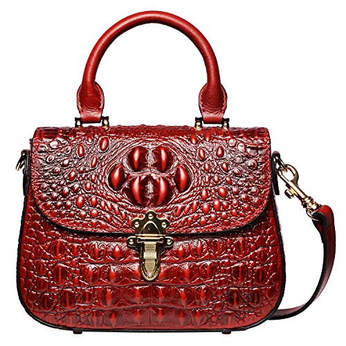 PIJUSHI Genuine Leather Crossbody Shoulder Bags for Women Designer Crocodile Purse Top Handle Satchel Handbag (99806 Red)