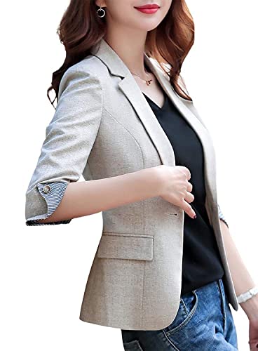 SUSIELADY Womens Notched Lapel Pocket Single Button Casual Work Office Blazer Jacket Slim Fit Blazer for Business Lady