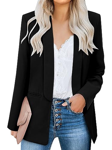 VNK Womens Business Casual Blazers Work Office Blazer Jacket Trendy Ladies Long Sleeve Suit Jacket Woman Lightweight Blazers Black Large
