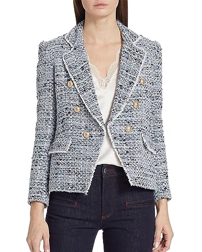 Tweed Blazer Jackets for Women Blue Blazers Cropped Ladies Tops Plaid Blazer for Women Boucle Jacket Cardigan Office Attire for Women 2023