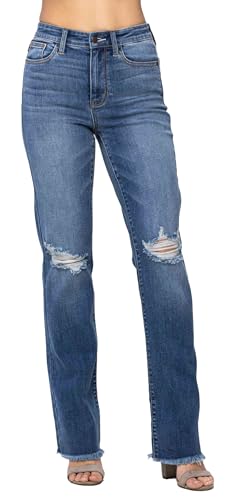 Judy Blue Women’s High-Rise Destroyed & Frayed Hem Straight Jeans 82513 (Medium Blue, 15)