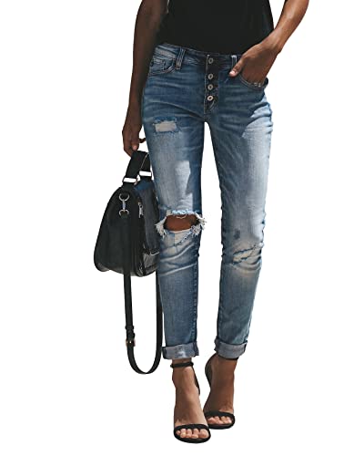 KUNMI Women’s Ripped Stretch Skinny Boyfriend Jeans Cute Distressed Denim Pants