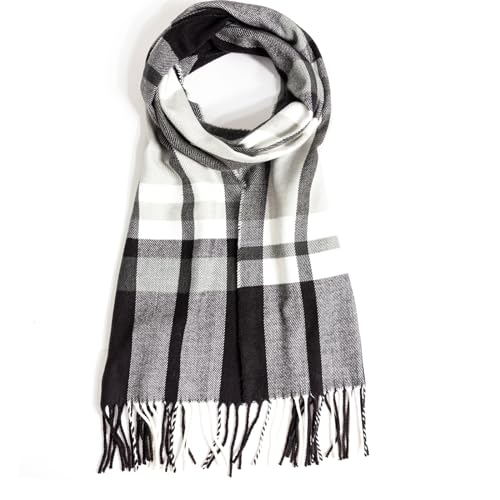 AUSEKALY Scarf For Men Women Cashmere Neck Scarf Plaid Winter Scarf Fall Softest Classic Warm Black White Gray