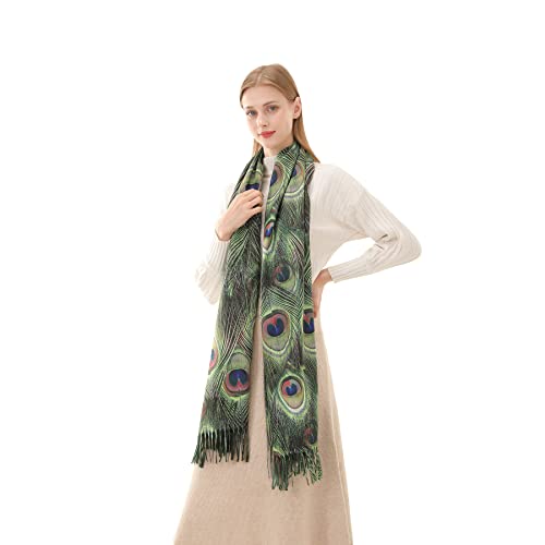 Cutewing Green Pashmina Scarf for Women Large Peacock Feather Shawl Wraps Fashion Printed Tassel Scarves Cashmere Blanket Scarf Warm for Fall Winter