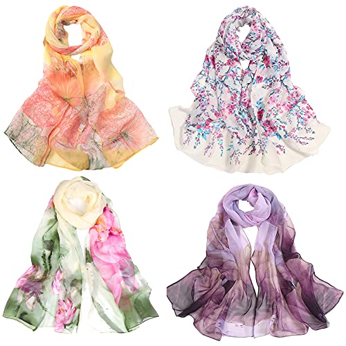 db11 Pack of 4 Chiffon Floral Scarf for Women Fashion Shawls Wraps Lightweight Large Neck Scarves (Color8)