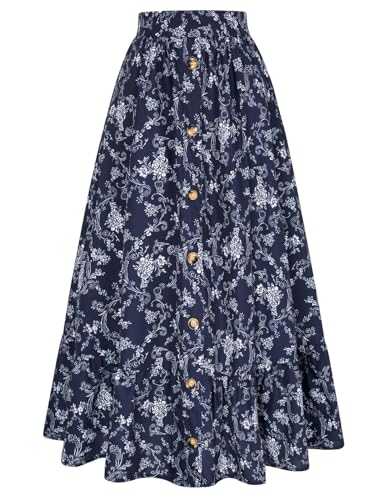 Long Skirts for Women Ruffle Maxi Renaissance Skirt Floral Fall Skirts High Waisted Flowy Skirt Navy Floral XL