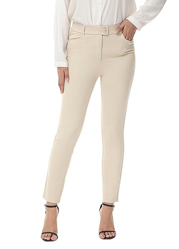 ZTN Women’s Stretchy Slim Dress Pants with 4 Pockets Pull-on Straight Leg Slacks for Work Business Casual Golf Khaki 2XL