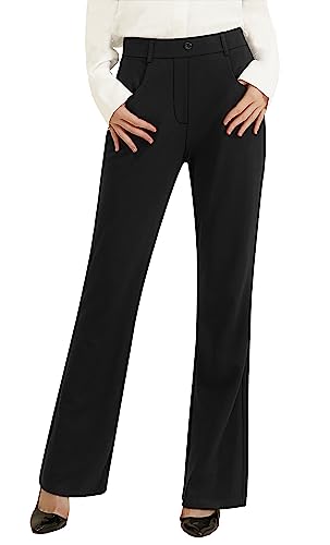 Zopo Wide Leg Dress Pants Women Yoga Work Business Casual Flare High Waisted Pants Bootcut Slacks with Pockets Office-Black-L