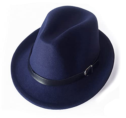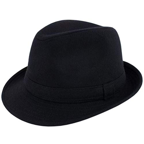 Men Classic Fedora-Hat Felt Manhattan-Gangster-Trilby with Band Unisex Women’s Structured Trilby Fedora Hat(Size:S)