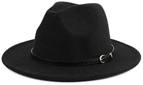 Melesh Wide Brim Unisex Classic Belt Buckle Fedora Hat