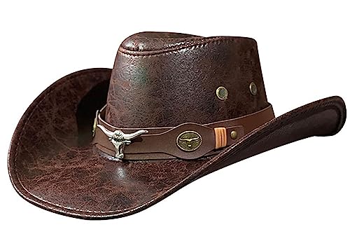 Men Women’s Western PU Leather Cowboy Hat Western Cowboy Cow Girl Hats Tourist Knight Hat Boho Hat