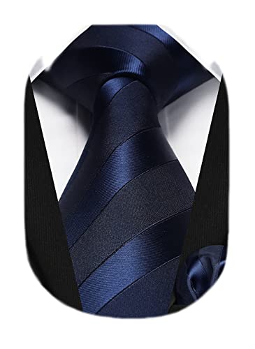 HISDERN Mens Ties Blue Tie and Handkerchief Set Navy Blue Striped Business Formal Woven Pocket Square Wedding College Striped Necktie for Son