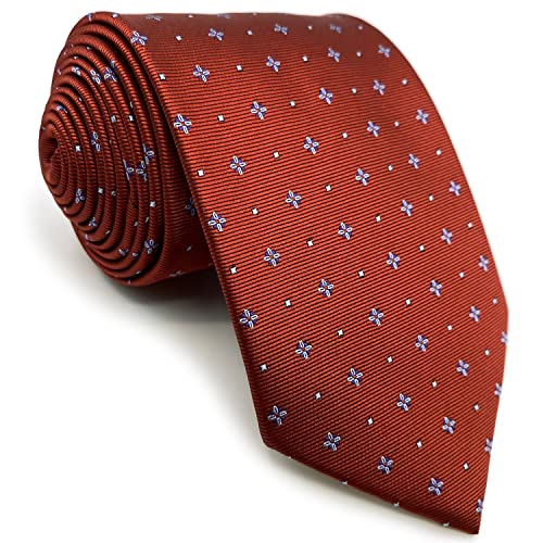 S&W SHLAX&WING Ties for Men Orange Dark Copper with Floral Pattern Classic Size