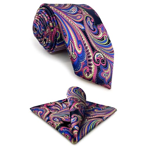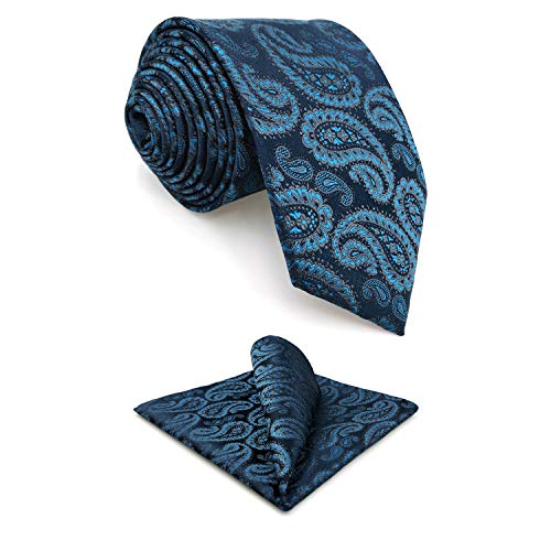 S&W SHLAX&WING Ties for Men Neckties Paisley Dark Blue Turquoise Classic Size Necktie with Pocket Square Set