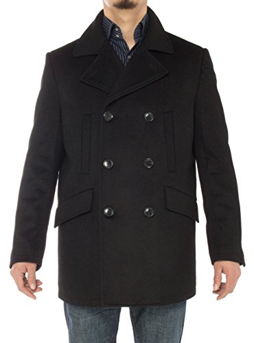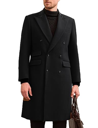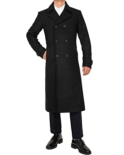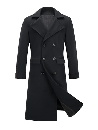 HXW.GJQ Men’s Premium Wool Blend Double Breasted Long Pea Coat (as1, alpha, l, regular, regular, Black)