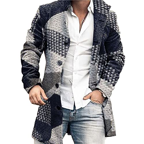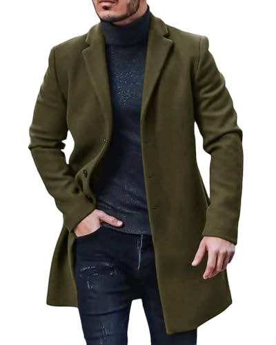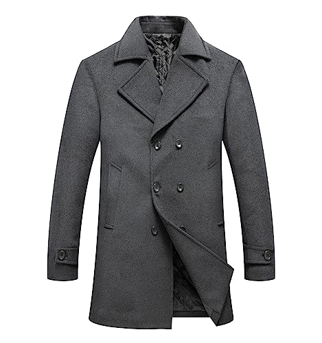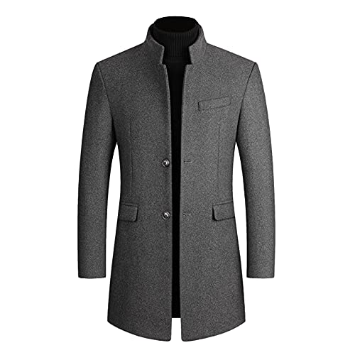 Lu’s Chic Men’s Long Trench Coat Single Breasted Thick Top Coats Business Button Down Overcoat Warm Dress Pea Coats with Pockets Long Sleeve Peacoat Outwear Wool Split Fashion 2023 Grey Medium