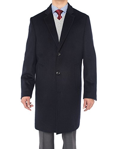 Luciano Natazzi Italian Men’s Cashmere Overcoat Knee Length Trench Coat Topcoat (44 US – 54 EU, Navy Blue)