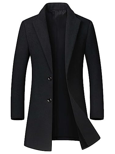 Litteking Men’s Winter Coat Wool Trench Overcoat Casual Single Breasted Pea Top Jacket Black L
