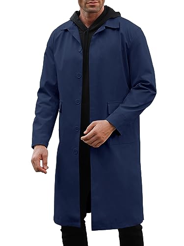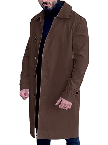 PASLTER Mens Trench Coat Single Breasted Long Jacket Slim fit Casual Windbreaker Lapel Windproof Overcoat
