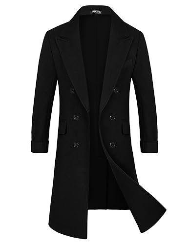 PASLTER Mens Notched Lapel Long Trench Coat Double Breasted Slim Heavyweight Winter Warm Pea Coat Overcoat Outwear