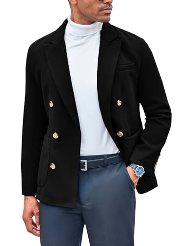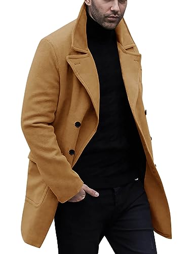 PASLTER Mens Classic Pea Coat Notched Lapel Double Breasted Wool Blend Trench Coat Regular Fit Winter Warm Overcoat