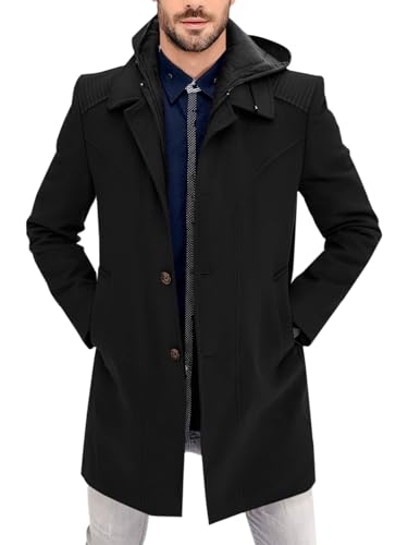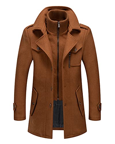 PASLTER Mens Trench Coat Wool Blend with Detachable Lining Single Breasted Pea Coat Casual Slim Fit Jacket Warm Overcoat