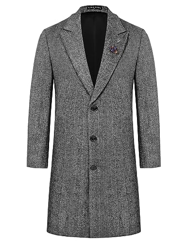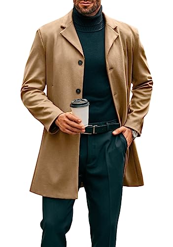 PASLTER Mens Trench Coat Slim Fit Notched Collar Fall Winter Single Breasted Pea Coat Warm Soft Overcoat