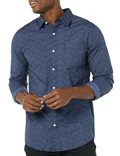 Amazon Essentials Men’s Long-Sleeve Slim-Fit Stretch Poplin Shirt, Navy Purple Floral, Large