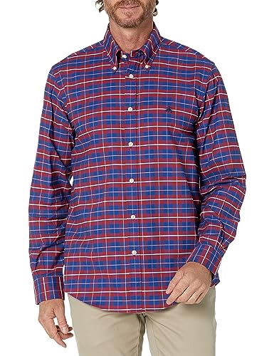 Brooks Brothers Men’s Non-Iron Stretch Oxford Sport Shirt Long Sleeve Check, Red Multi, Medium