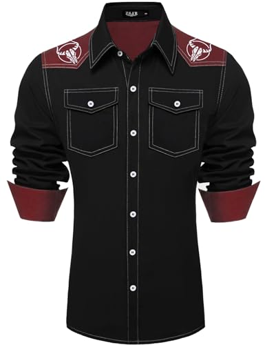 ZSJR Men’s Western Cowboy Shirt Long Sleeve Embroidered Casual Button Down Shirt