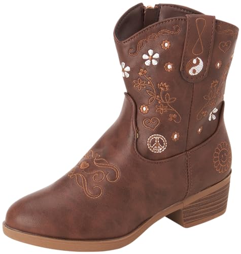bebe Girls’ Cowgirl Boots – Embroidered Western Roper Boots – Cowboy Boots for Girls (Toddler/Girl), Size 6 Toddler, Brown