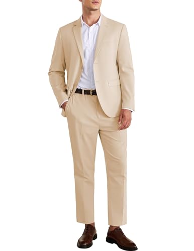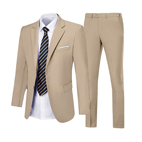 AIBUYTA Mens Suit 2 Piece, Tuxedo for Men Wedding Formal Suit Jacket 2 Buttons Blazer Pant Set Prom Homecoming Suit Champagne XXL