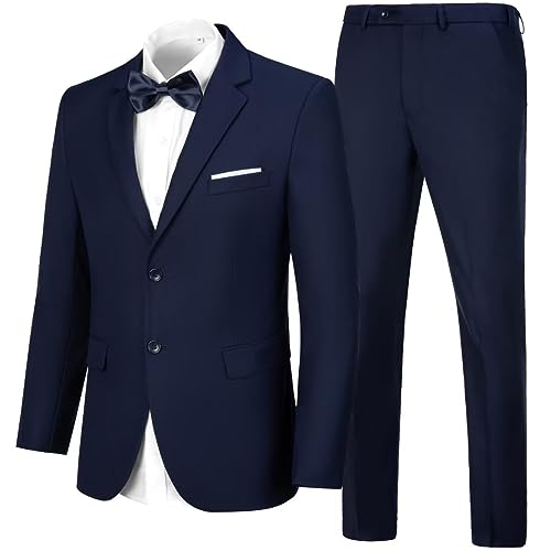 CAZUOYI Navy Blue Suit for Men Slim Fit Prom Homecoming Suits Wedding Tuxedo Outfit Easter Suit Size S