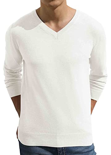 Sailwind Mens V-Neck Wool Knit Casual Pullover Sweater White