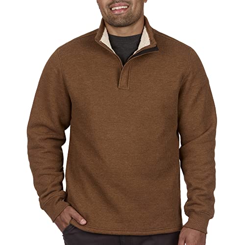 The American Outdoorsman Sherpa Lined Waffle Quarter Zip Mock Neck Long Sleeve Pullover for Men – Ideal for Outdoor Adventure (Copper Heather, XXL)