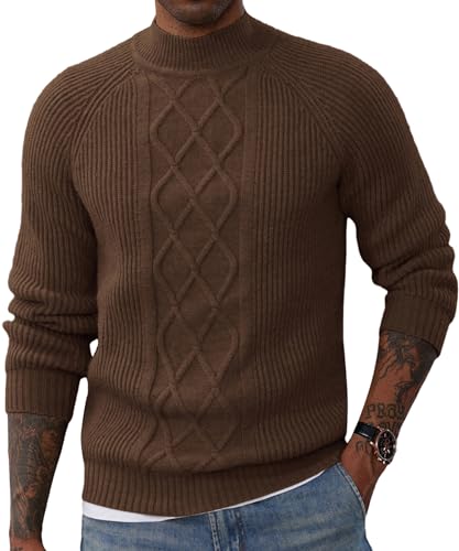 PJ PAUL JONES Mens Sweater Cable Knitted Comfortable Thermal Classic Pullover Sweaters Warm Tops Coffee L