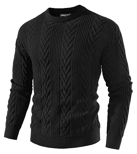 PJ PAUL JONES Mens Cable Knit Sweater Casual Crewneck Black Sweater Long Sleeve Textured Knit Sweaters Solid Color M