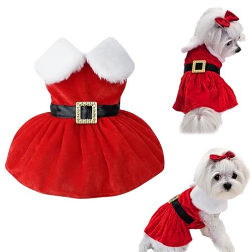 Dog Christmas Costume Puppy Dress, Santa Claus Pet Clothes Velvet Skirt Thermal Shirt Winter Coat Xmas Holiday Apparel Cute Girl Clothing Red Dresses, Dog Outfit for Small Medium Dogs Cats (M, Red)