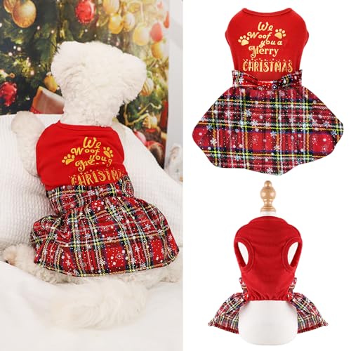 Dog Christmas Outfit Dog Dresses for Medium Dogs Girl XXS Puppy Clothes Holiday Pet Dress Xmas Cat Apparel Clothing Plaid Doggy Skirt Party XXS Doggie Costume (Medium, Red)