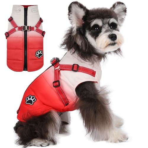 Norbi Dog Winter Coat, Gradient Dog Coat with Harness Reflective Adjustable Straps Warm Dog Coats, Stylish Dog Jacket Vest for Small Medium Dogs (Medium, Gradient Red)