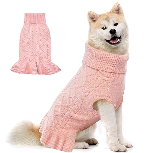 Lelepet Dog Sweater Dress Large Dog Sweaters for Girls Dog Sweaters for Large Dogs Turtleneck Pullover Dog Knitwear Cable Knit Warm Dog Dress Puppy Fall Pet Sweater, Pug, Bulldog, XL, Pink