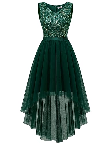BeryLove Homecoming Dresses for Teens Sequin Dress Sleeveless Mesh Dress Hi-Lo Cocktail Party Formal Girls Dresses S003 DarkGreen S