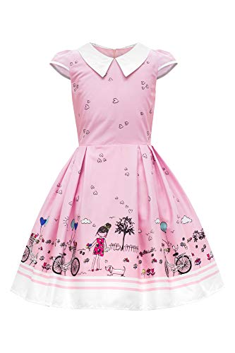 BlackButterfly Kids ‘Olivia’ Vintage Sunshine 50’s Children’s Girls Dress (Pink, 13-14 YRS)