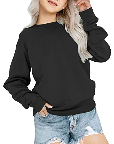 Bingerlily Girls Casual Long Sleeve Sweatshirt Crew Neck Cute Pullover Relaxed Fit Tops (Black,12-13 years,Polyester,Cotton,Spandex,Big Kid,Female,Age,US,13 Years)