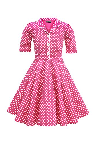 BlackButterfly Kids ‘Sabrina’ Vintage Polka Dot 50’s Girls Dress (Pink, 11-12 YRS)