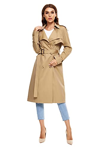 WAIDONGBEI Women’s Trench Coat, Double-breasted Rain Coat with Belt 100% Cotton